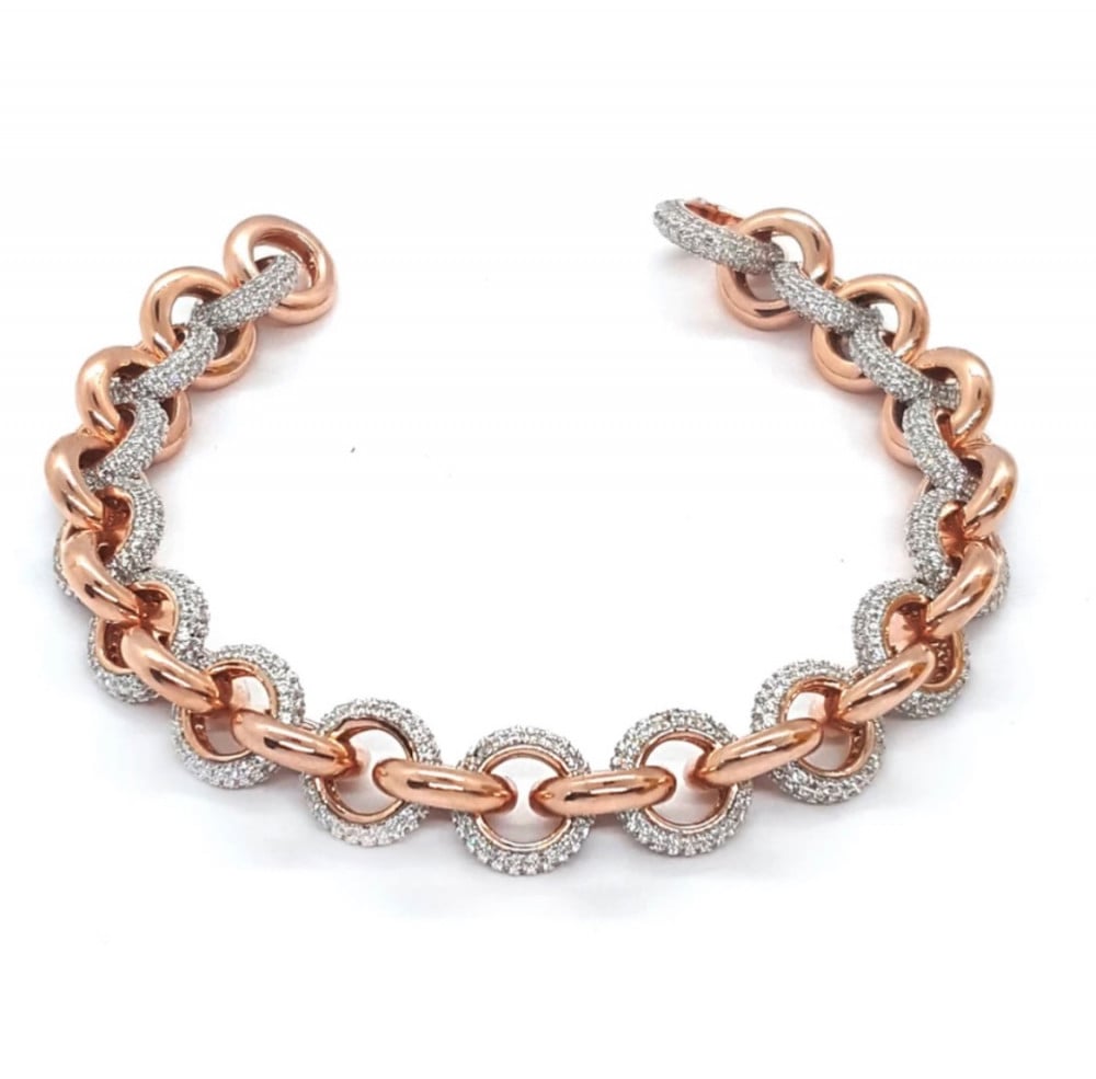 إسوارة فاخرة تجسد روح الأناقة العصرية من مجموعة NALURE by Silver Dukkan. بتصميم سلاسل متشابكة من الفضة عيار 925 مطلية بالروز قولد ، تتناوب بين الحلقات اللامعة والمطعمة بزركون ناعم يعكس الضوء ببريق راقٍ. تجمع هذه القطعة بين القوة والأنوثة لتكون الإضافة المثالية لأي إطلالة فخمة.